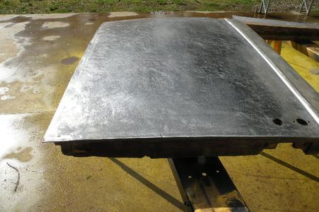 I put the skin in my Molasses dip tank for a couple of days & it de rusted it real nice. With the skin sitting on the frame un clamped it settles real nice. I also have a bunch of shrink disc time to smooth out the wrinkle's.
