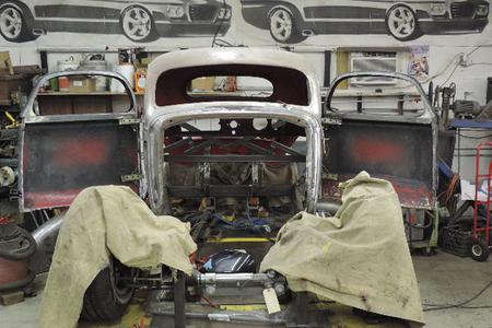 This is what the customer brought in a steel body with fiberglass fenders, a small block motor & 4l80 trans