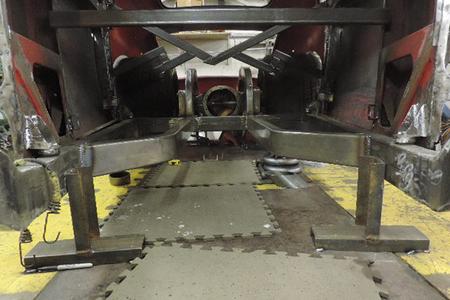 We have made a temporary body mount duplicating the frame section while waiting for chassis parts.
