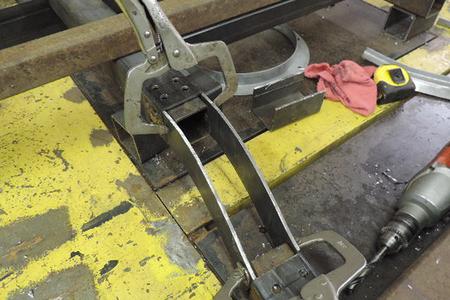 Then the 2nd one was placed on the jig table & the already pre welded set on top for same fitment check, notice the 4 machinist squares checking for a match. Then the lower one was clamped & fully welded
