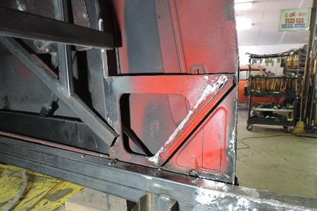 A temporary support was made to help keep the shape where the fender to radiator shell support bolts on.