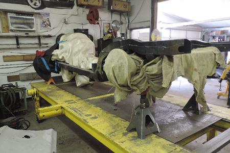 The body & temp sub frame was then put on a build cart then the rest of the crud cleaned off