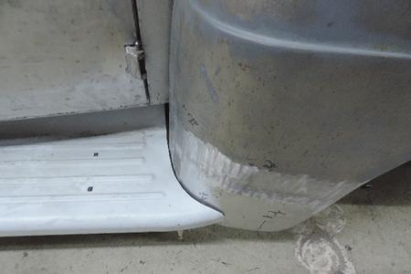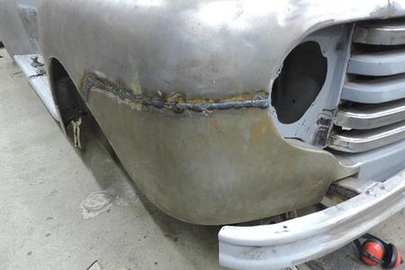 Both fenders needed rear lower patch sections also again aftermarket welded then ground clean.