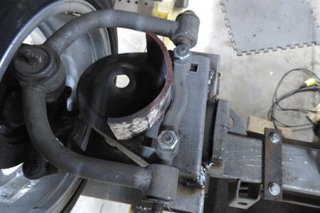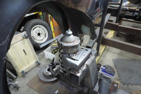 The spring cap was cut then the spacer and cap are tack welded for fit check.