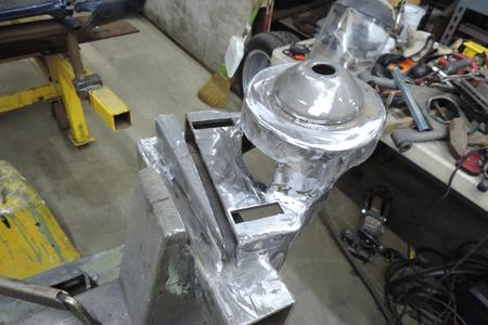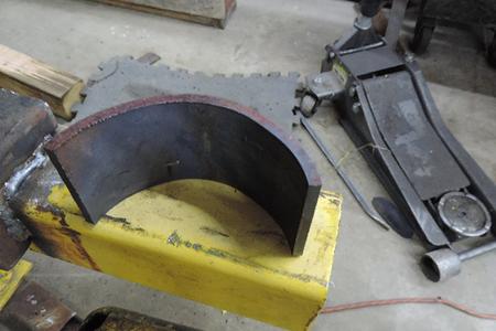A slot was cut for the new 3/8 thick upper adjustment plate. Also all the filler pieces installed and welds ground clean.