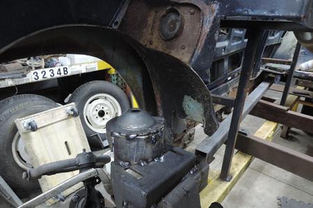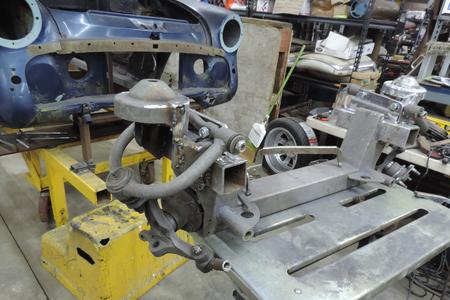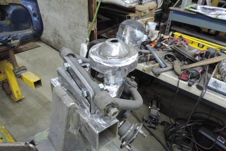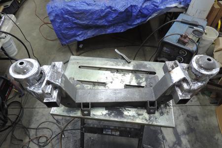 The new highly custom refigured front crossmember needs just a little more clean up, then fit back under the car.