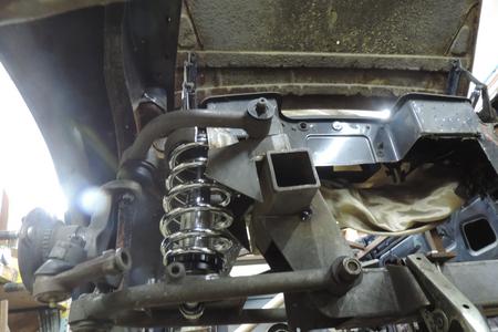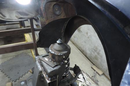 I am back on the Hillman some due to family health issues I haven't touched it in 5 months. Hope full some progress every week. I now have the upper shock hats tack welded in place , but I will need to raise the spring cap area up due to the coil over height needed. The Miata spindles are 1 1/2 inches shorter then the Mustang spindles so I had to lower the upper control arm pivot section to handle the shorter spindle height. But the coil over shock needs more height.