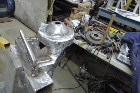 After some minor adjustments the coil over is mounted on the right side. Its just tacked in place and will be fully finished, welded and ground clean.