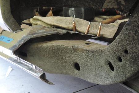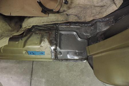Back on the left side the inner dog leg needed a repair section fabbed up then it was painted with rust preventative paint.